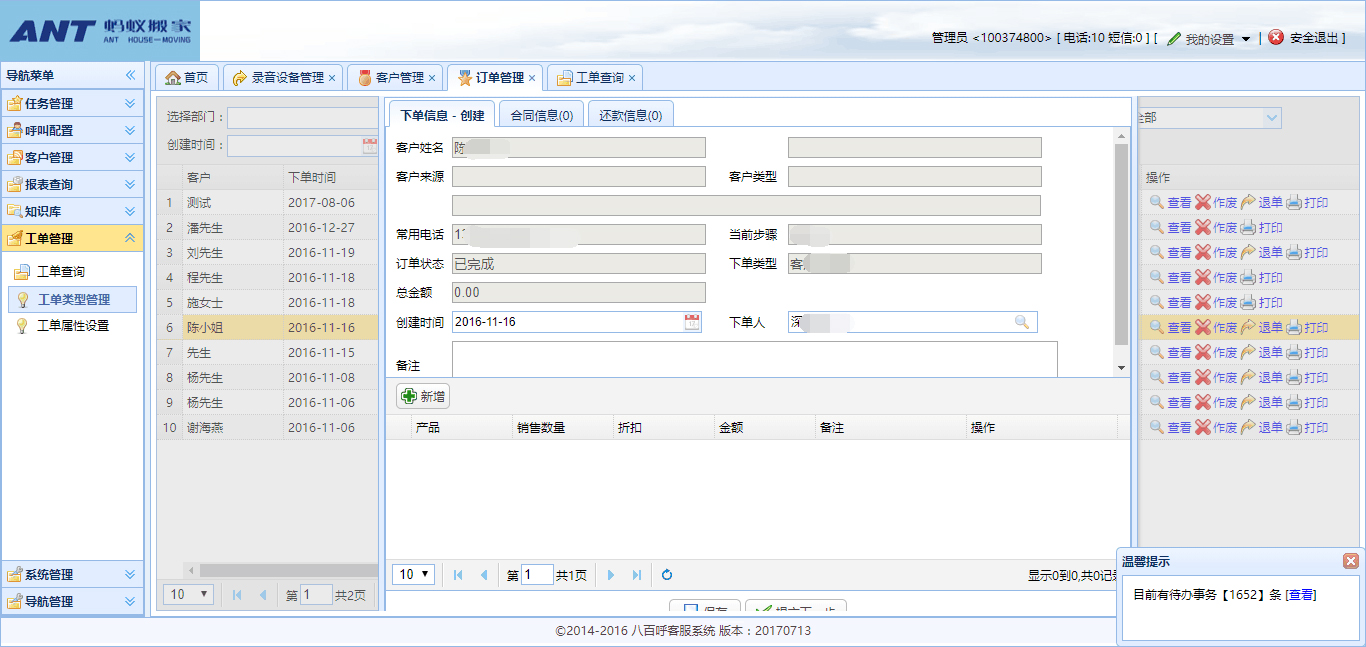 - ∝工单系统:总部实现任务工单下达,各分部接收及处理现状查询、工单处理催促、完成情况统计等